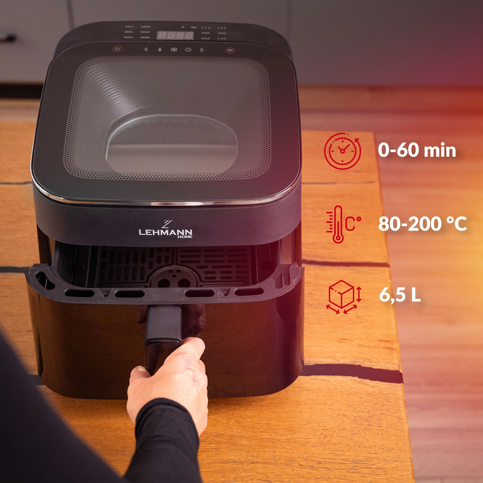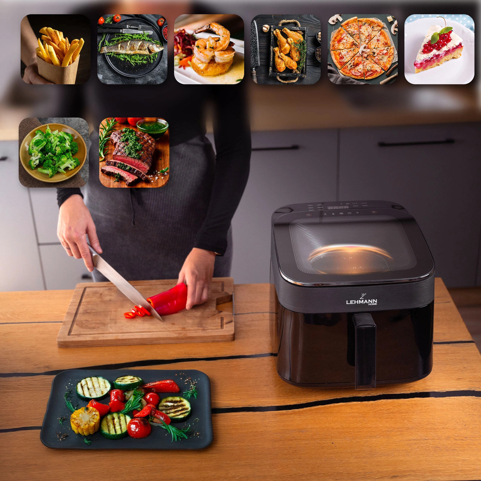 Mamy rozwiązanie! Frytkownica beztłuszczowa Lehmann Tonali o mocy 1700 W i pojemności 6,5 litra ofertuje 12 automatycznych programów, które ułatwiają przygotowanie posiłków. Gotujesz zdrowiej, a dzięki okienku z tafli szkła hartowanego stale kontrolujesz poziom pieczenia.