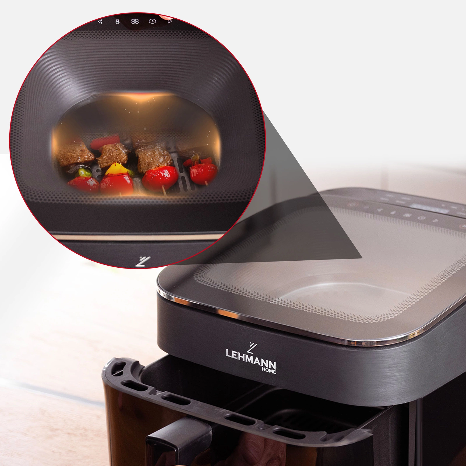 Podświetlenie i bardzo duże okienko podglądu umożliwiają sprawdzanie potraw bez otwierania urządzenia. Stała temperatura, oszczędność czasu i perfekcyjnie wypieczone jedzenie za każdym razem.