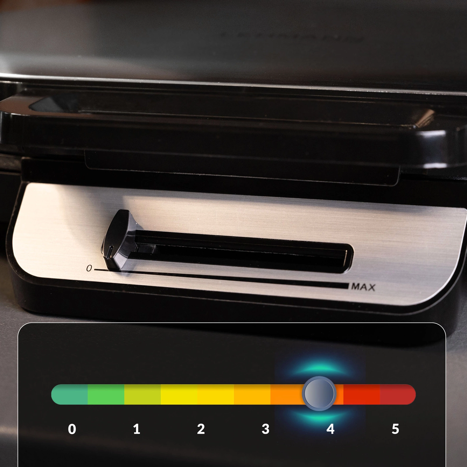 Gofrownica Lehmann ma praktyczny suwak do regulacji mocy. Dzięki niemu łatwo dopasujesz stopień wypieczenia – od delikatnie miękkich po mocno chrupiące gofry, zawsze idealne tak, jak lubisz.