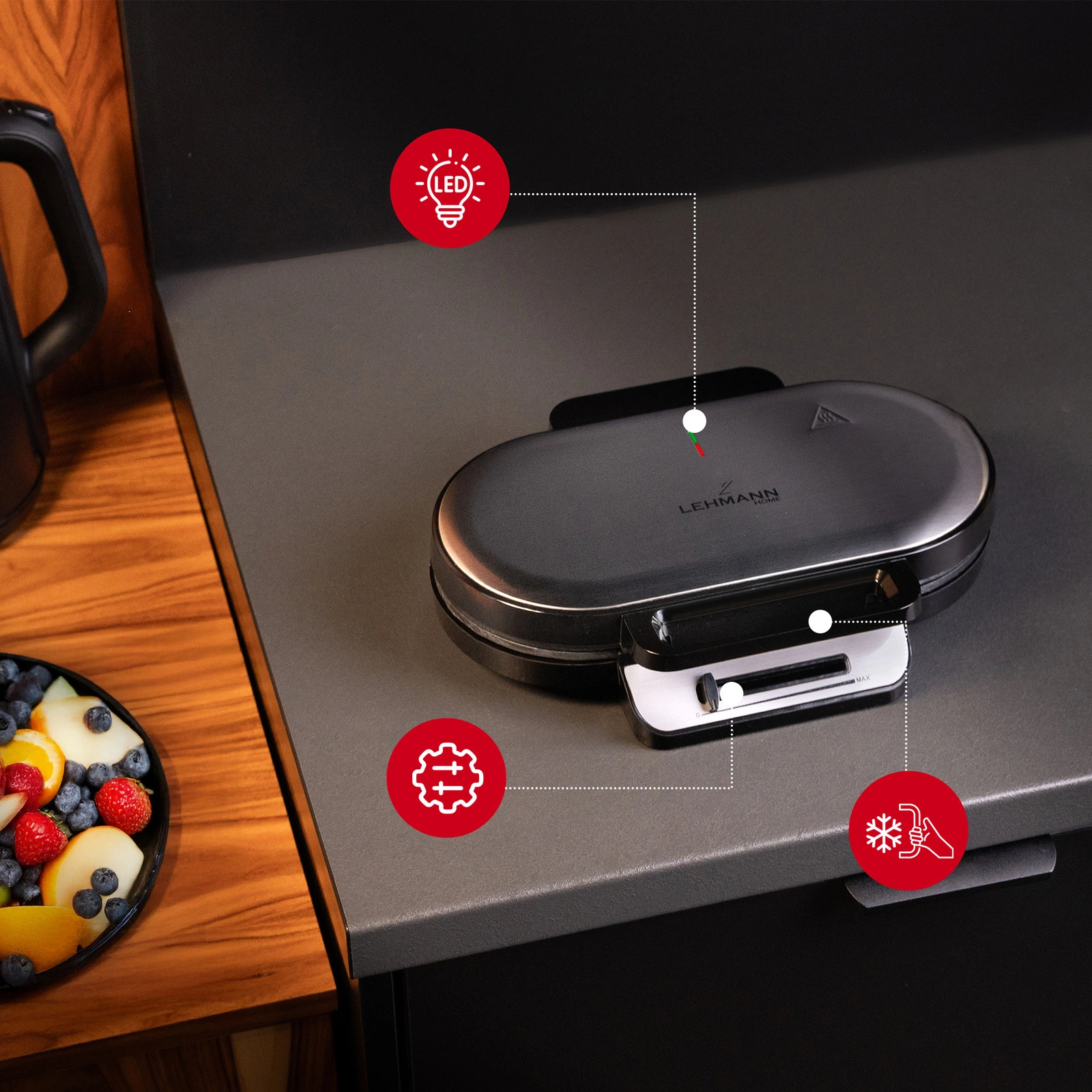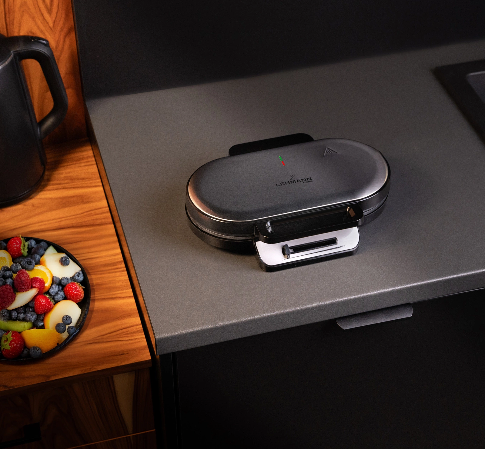 Lehmann Cruncher 2000 o mocy 1200 W i wydajności 2000 W nagrzewa się błyskawicznie. Dzięki temu w kilka minut przygotujesz puszyste, złociste gofry – bez czekania i zawsze z idealnym efektem.
