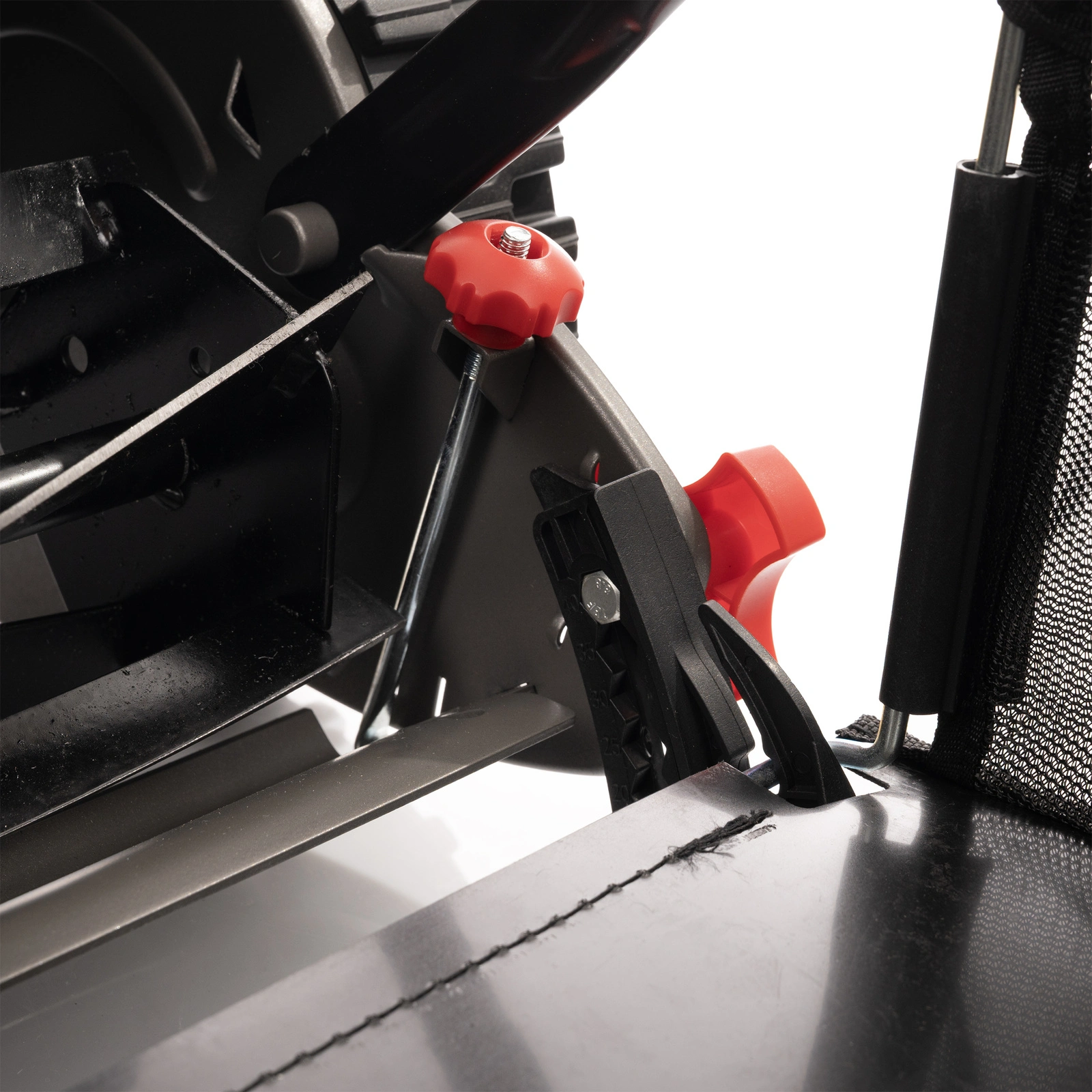 Solidne nakrętki zabezpieczające utrzymują ustawioną wysokość koszenia podczas pracy. Zapobiegają samoczynnemu przestawianiu regulacji, zapewniając powtarzalne, równe koszenie i większą precyzję pielęgnacji trawnika.