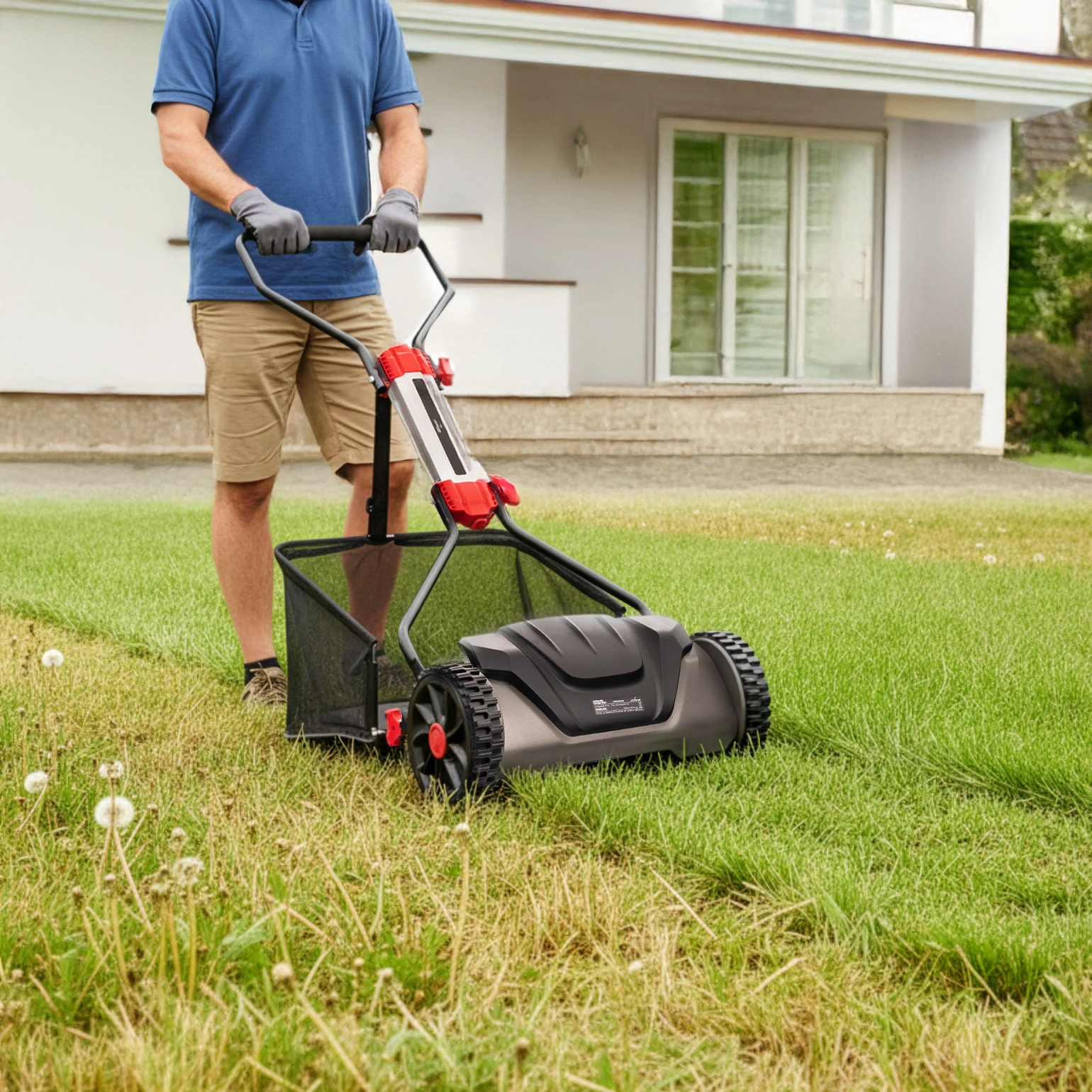 Dla domów i ogrodów przydomowych – szerokość koszenia 40 cm, 5-nożowe wrzeciono oraz regulacja wysokości 15–42 mm pozwalają skutecznie pielęgnować trawnik wokół domu.