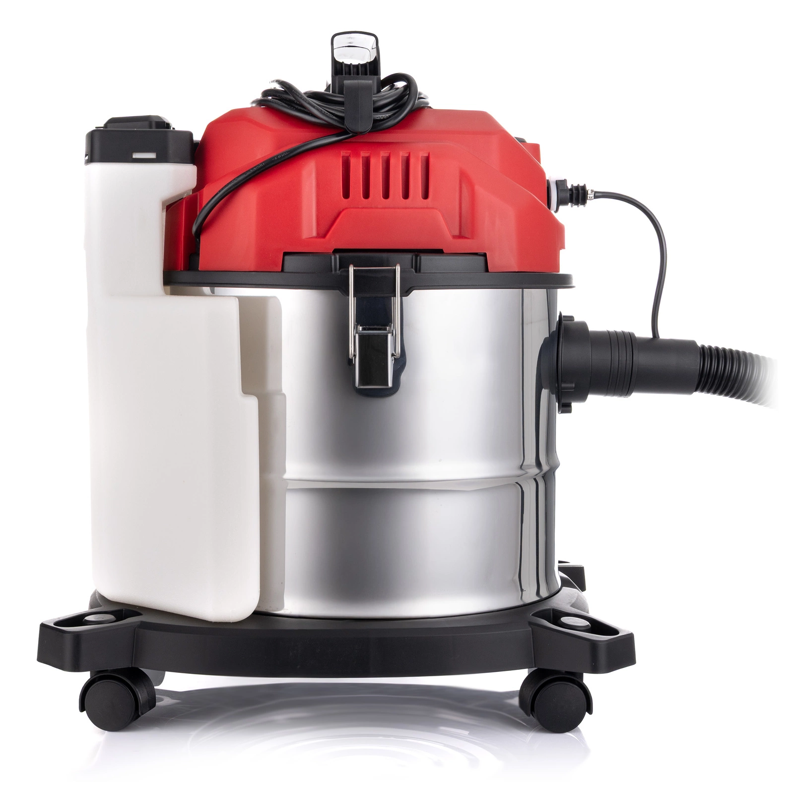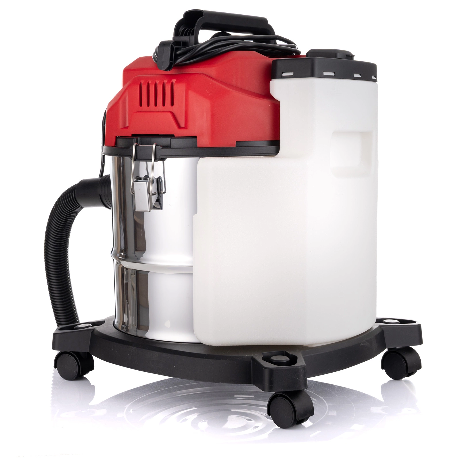Postaw na nowy model Lehmann i zapomnij o uciążliwych wężach! Odkurzacz wyróżnia zintegrowany system spryskiwania oraz prosty w napełnianiu zbiornik na czystą wodę. Jego solidna podstawa z kołami zapewnia dużą stabilność w czasie pracy oraz łatwe manewrowanie.