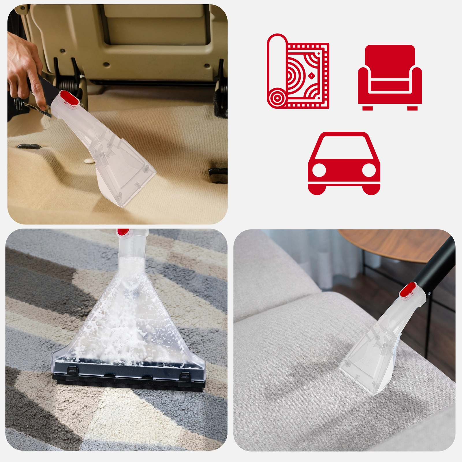 Dołączone ssawki sprawdzą się do prania dywanów, mebli i samochodu.