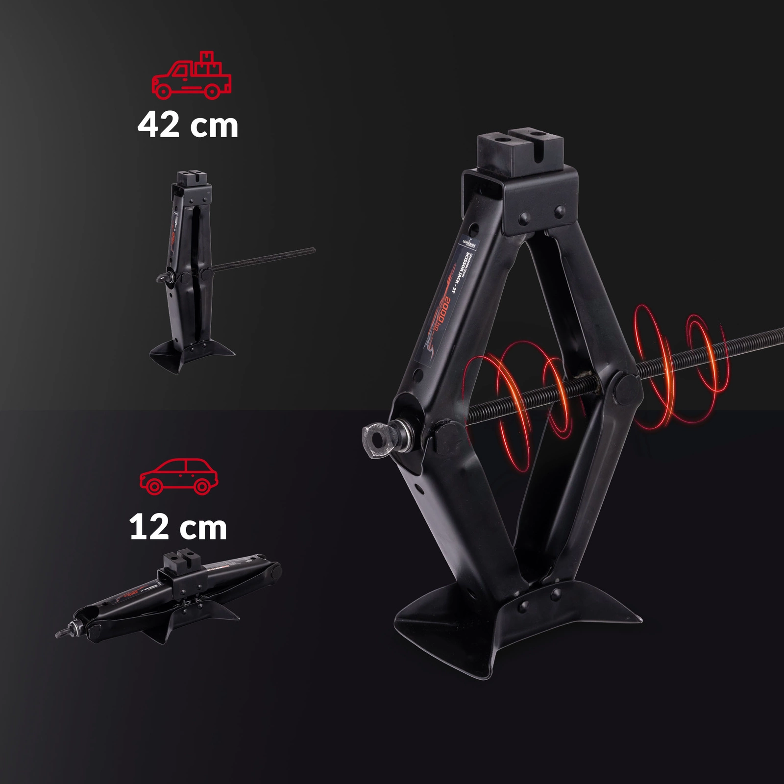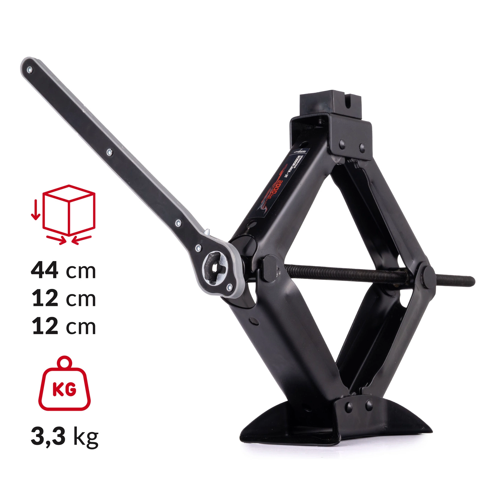 Profesjonalnie wykonany podnośnik, dzięki swojej trapezowej konstrukcji, jest w stanie bez problemu unosić pojazdy o maksymalnej wadze do 2000 kg. Urządzenie przyda się nie tylko w awaryjnych sytuacjach, ale również do samodzielnych prac przy samochodzie, takich jak wymiana kół.