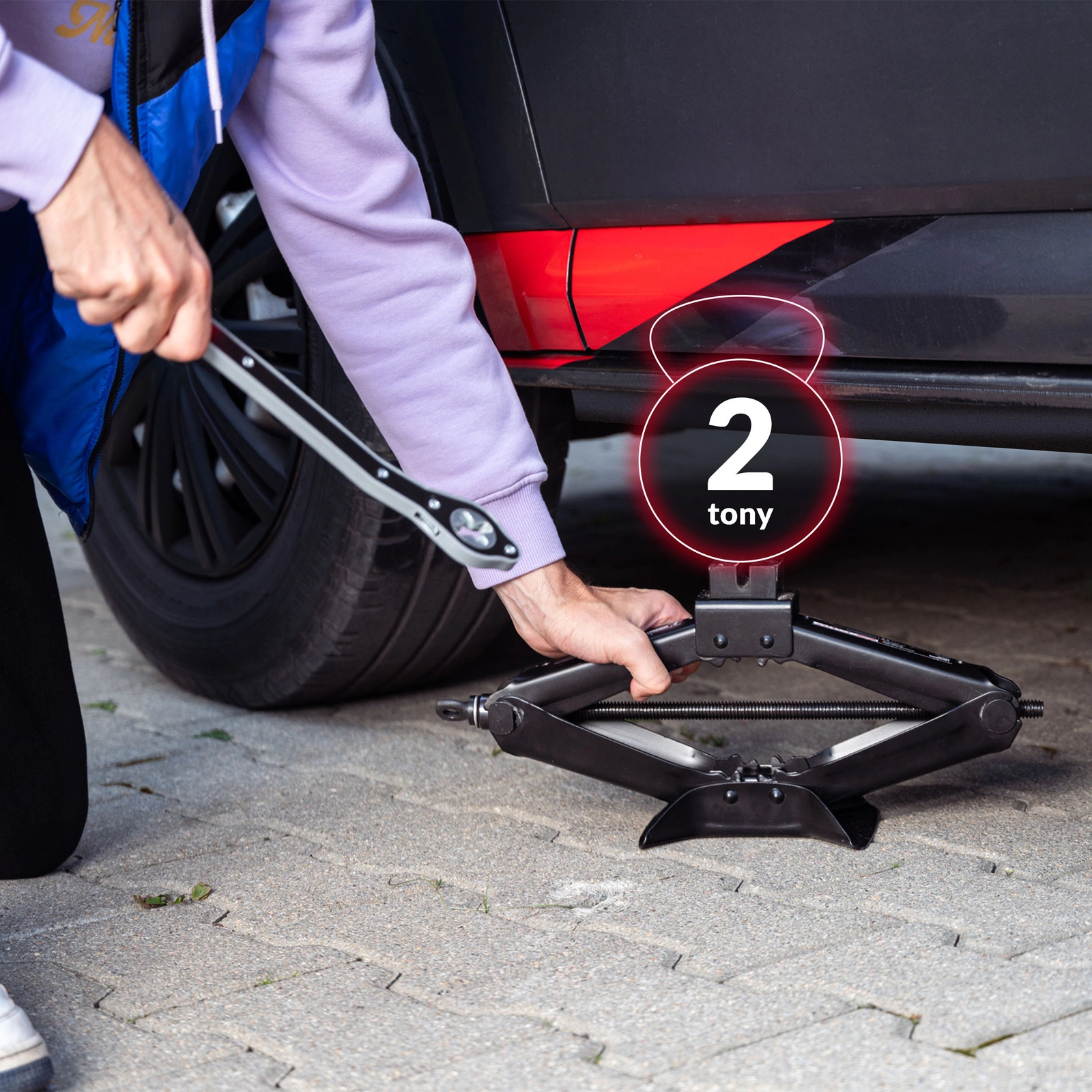 - Pełen zestaw akcesoriów: podnośnik, klucz grzechotkowy, instrukcja obsługi – gotowy do użycia zaraz po zakupie.