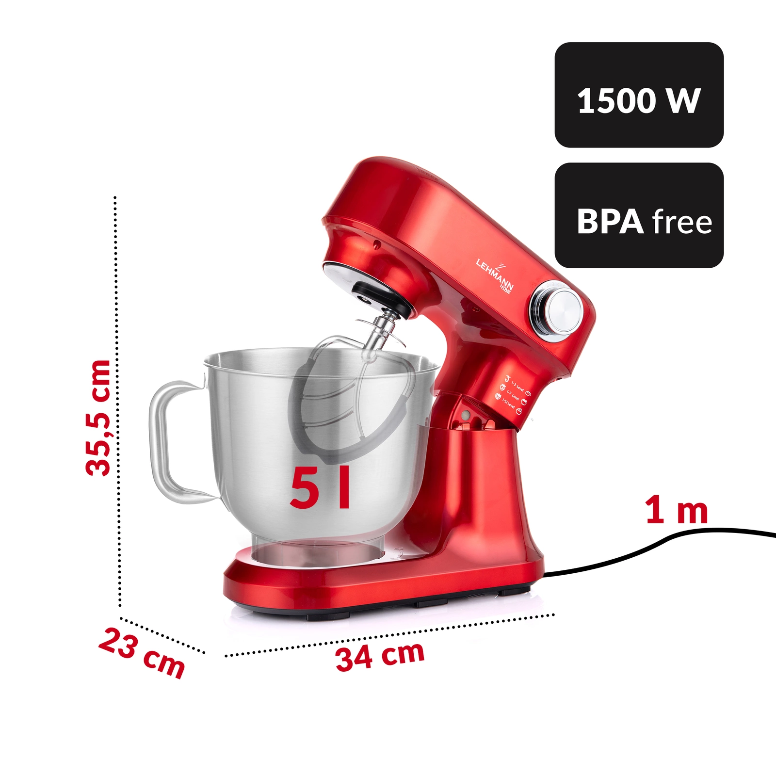 Poznaj nowy poziom komfortu w swojej kuchni z robotem planetarnym LEHMANN Celesto w kolorze czerwonym – niezastąpionym pomocnikiem każdego domowego kucharza! Dzięki mocy aż 1500 W, pojemnej 5-litrowej misie ze stali nierdzewnej oraz 12-stopniowej regulacji prędkości z łatwością przygotujesz ciasto na pizzę, ubijesz śmietanę czy wymieszasz gęste masy. Solidna konstrukcja, estetyczny połysk i stylowy wygląd sprawiają, że robot Celesto stanie się ozdobą każdej kuchni.