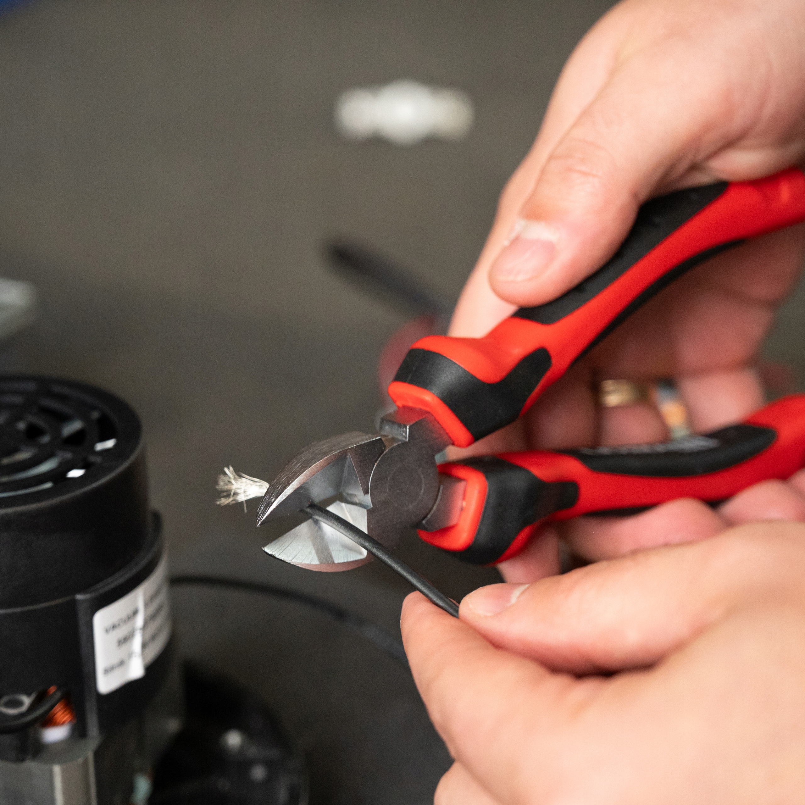 Ergonomiczne uchwyty redukują zmęczenie dłoni i zapobiegają ślizganiu się podczas użycia. Dzięki temu każda naprawa jest wygodniejsza, stabilniejsza i całkowicie pod kontrolą.