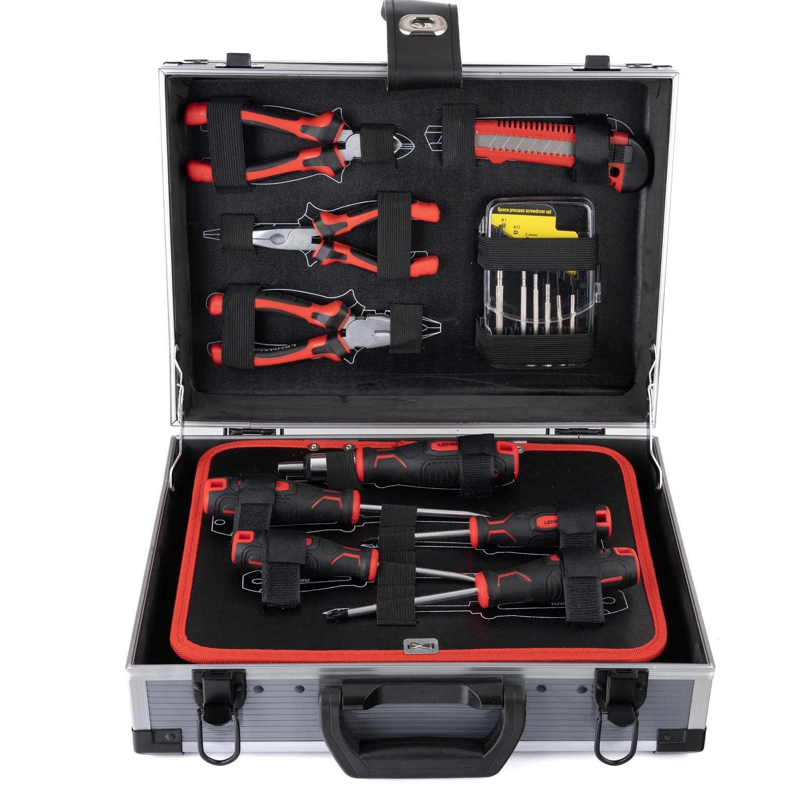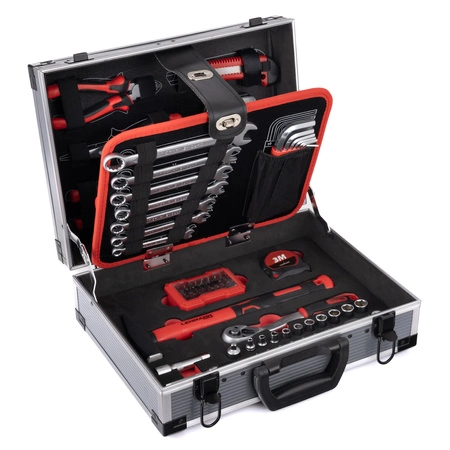 Szukasz praktycznego kompletu do domu lub warsztatu? Wybierz zestaw narzędzi idealny do napraw, montażu i majsterkowania. Zawiera klucze, szczypce, wkrętaki i nasadki – wszystko, czego potrzebujesz w jednej walizce.