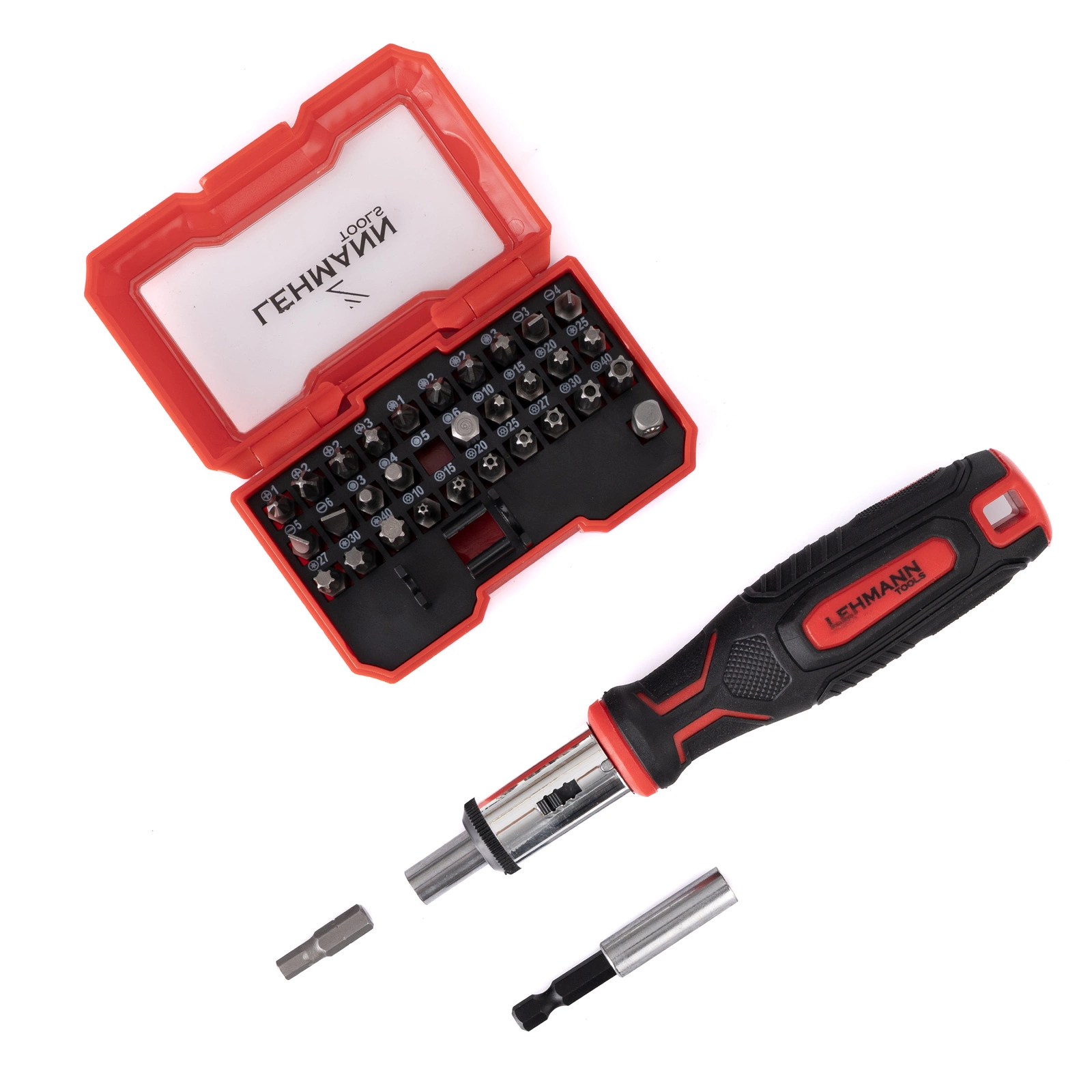 30 bitów o różnych końcówkach pozwala dopasować narzędzie do każdego rodzaju śruby, a wysokiej jakości stal węglowa zapewnia trwałość.