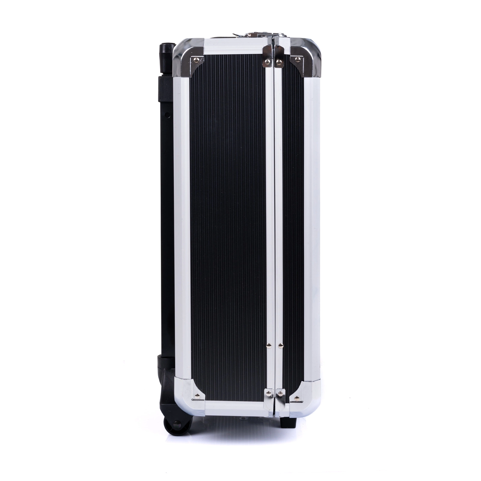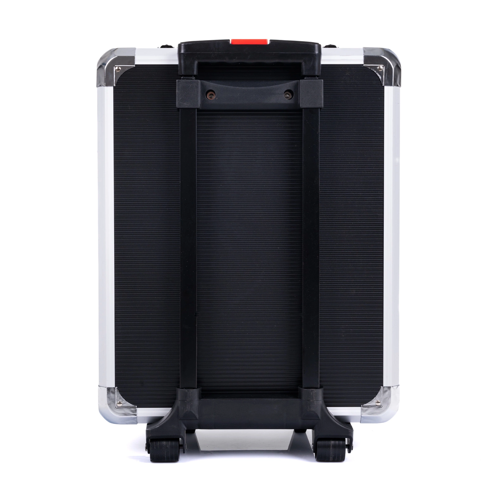 Mobilna konstrukcja z kółkami – walizka waży jedynie 12,5 kg, a teleskopowy uchwyt i koła transportowe zapewniają wygodne i bezwysiłkowe przemieszczanie całego zestawu.