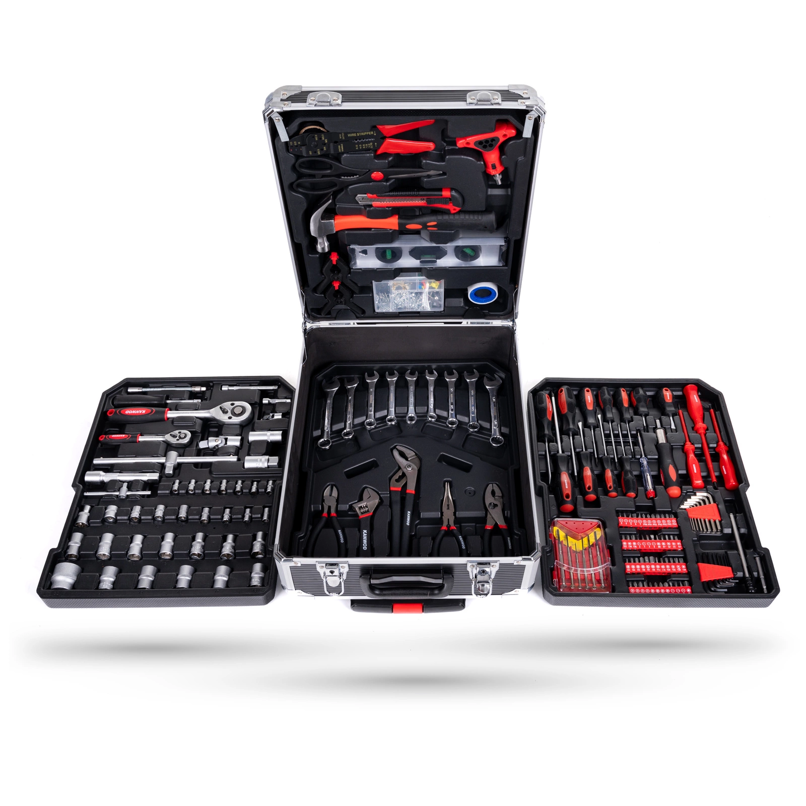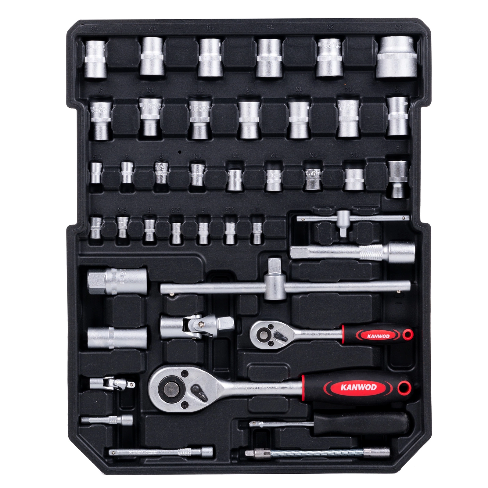 Wysoka jakość wykonania – klucze, nasadki, szczypce i wkrętaki wykonano z trwałych, odpornych na zużycie materiałów, dzięki czemu zestaw posłuży przez wiele lat intensywnej pracy.