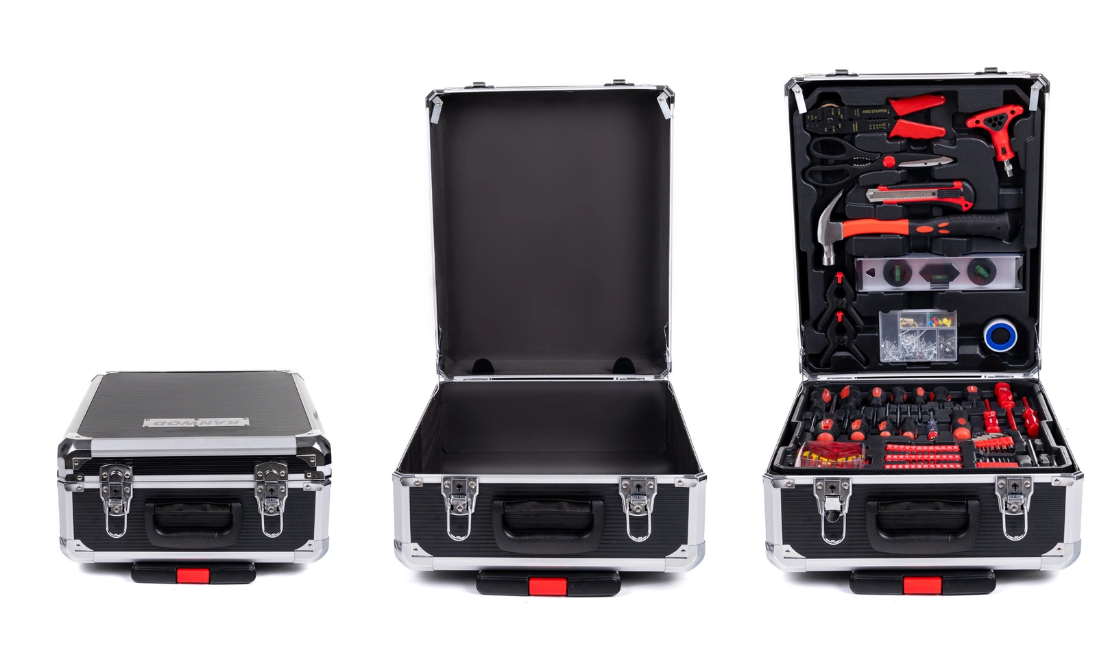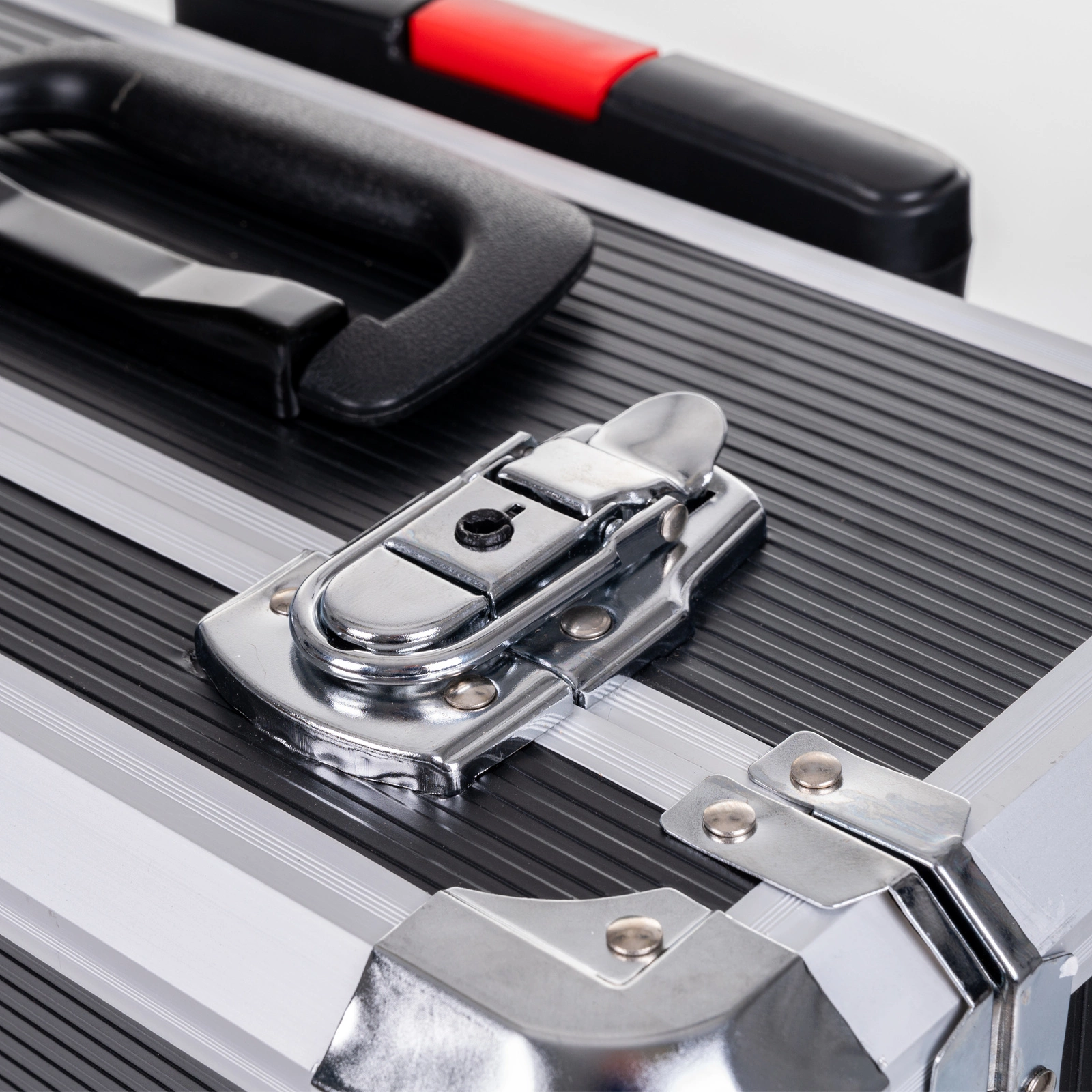 Dla osób ceniących porządek i ergonomię – każdy element ma swoje miejsce, organizery utrzymują narzędzia w idealnym układzie, a metalowe zamki z kluczykiem zabezpieczają zestaw przed zgubieniem i dostępem osób trzecich.